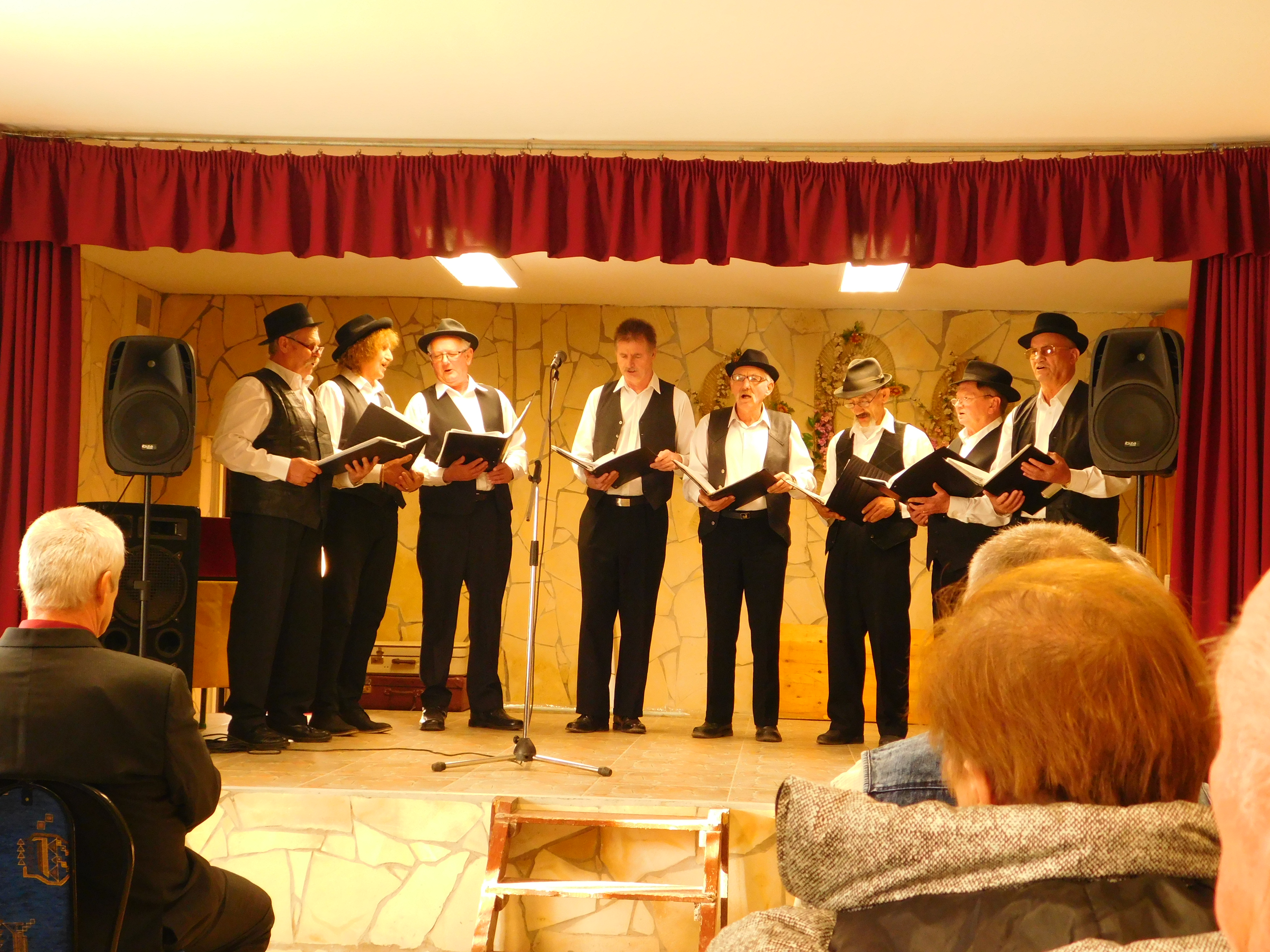 Ezután elmentünk a falu rendezvényterméba, ahol zenés műsorral kedveskedtek nekünk.